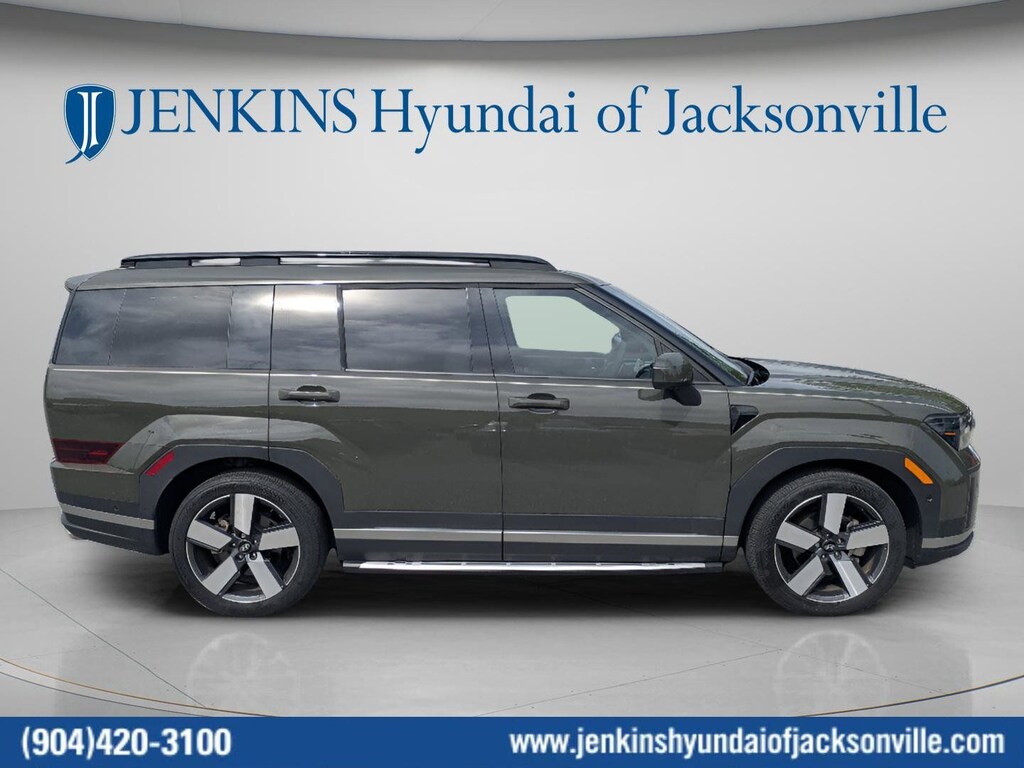 CARFAX One-Owner. This 2024 Hyundai Santa Fe Limited in Rockwood Green features Option Group 01, 12 Speakers, 3rd row seats: bench, 4-Wheel Disc Brakes, ABS brakes, Air Conditioning, Alloy wheels, AM/FM radio: SiriusXM, Apple CarPlay & Android Auto, Auto High-beam Headlights, Auto-dimming Rear-View mirror, Automatic temperature control, Axle Ratio: 3.316, Brake assist, Bumpers: body-color, Carpeted Floor Mats, Delay-off headlights, Driver door bin, Driver vanity mirror, Dual front impact airbags, Dual front side impact airbags, Electronic Stability Control, Emergency communication system, Exterior Parking Camera Rear, Four wheel independent suspension, Front anti-roll bar, Front Bucket Seats, Front Center Armrest, Front dual zone A/C, Front reading lights, Fully automatic headlights, Garage door transmitter: HomeLink, Heated & Ventilated Front Bucket Seats, Heated door mirrors, Heated front seats, Heated rear seats, Heated steering wheel, Illuminated entry, Knee airbag, Leather Seat Trim, Leather steering wheel, Low tire pressure warning, Memory seat, Navigation System, Occupant sensing airbag, Outside temperature display, Overhead airbag, Overhead console, Panic alarm, Passenger door bin, Passenger vanity mirror, Power door mirrors, Power driver seat, Power Liftgate, Power moonroof, Power passenger seat, Power steering, Power windows, Radio: AM/FM/HD Bose Premium Audio System, Rain sensing wipers, Rear anti-roll bar, Rear seat center armrest, Rear side impact airbag, Rear window defroster, Rear window wiper, Remote keyless entry, Security system, Speed control, Speed-sensing steering, Split folding rear seat, Spoiler, Steering wheel mounted audio controls, Tachometer, Telescoping steering wheel, Tilt steering wheel, Traction control, Trip computer, Turn signal indicator mirrors, Variably intermittent wipers, Ventilated front seats, Wheel Locks, and Wheels: 20" x 8.5J Alloy . Visit our showroom 24/7 at Jenkinshyundaiofjacksonville or call 904-420-3100. FWD