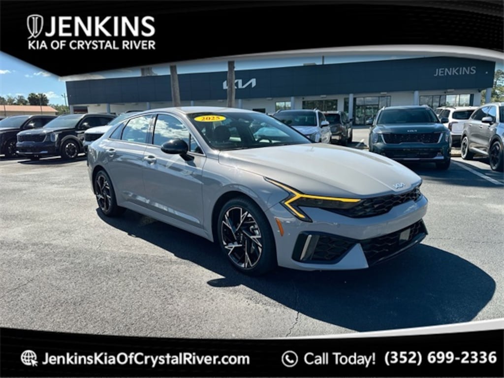 The price does not include tax, tag, license, an electronic filing fee of $449.00**, a private tag agency fee of $199.00**, and a predelivery service charge of $1199.00** **This charge represents costs and profit to the dealer for items such as inspecting, cleaning, and adjusting vehicles, as well as preparing documents related to the sale. * EPA-estimate metric: these are contingent on ideal conditions within a lab. Real-world situations such as carrying passengers or cargo, using climate control, driving style, and ambient temperatures can affect actual metrics. 25/36 City/Highway MPG Certified. Wolf Gray 2025 Kia K5 GT-Line FWD 8-Speed Automatic I4