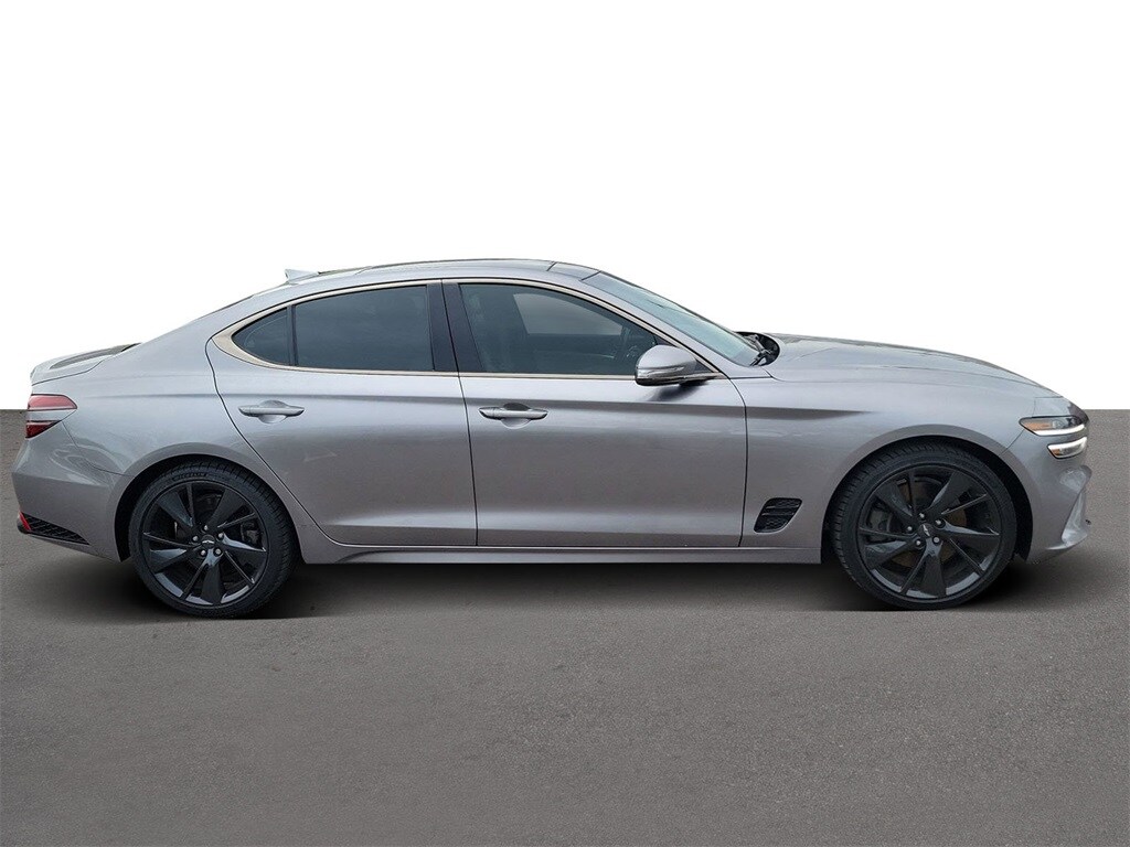 This vehicle comes equipped with Sport Advanced Package (Alloy Pedals, Dark Chrome Grille & Daylight Opening, Door & Console Aluminum Trim w/Sport Pattern, Forward/Reverse Parking Distance Warning, Front Side Acoustic Laminated Glass, Genesis Digital Key, Option Group 03, Power Driver Seat Side Bolster & Cushion Extension, Radio: AM/FM/SiriusXM/HD Lexicon Prem Audio System, Variable Exhaust Valve System, Ventilated Front Seats, Wheels: 19" x 8.0J Fr & 19" x 8.5J Rr Sport Alloy, Wide Sunroof, and Wireless Device Charging), 4-Wheel Disc Brakes, 6 Speakers, ABS brakes, Air Conditioning, Alloy wheels, AM/FM radio: SiriusXM, Android Auto & Apple CarPlay, Anti-whiplash front head restraints, Auto High-beam Headlights, Auto-dimming door mirrors, Auto-dimming Rear-View mirror, Automatic temperature control, Brake assist, Bumpers: body-color, Delay-off headlights, Driver door bin, Driver vanity mirror, Dual front impact airbags, Dual front side impact airbags, Electronic Stability Control, Emergency communication system: Genesis Connected Services, Exterior Parking Camera Rear, Four wheel independent suspension, Front anti-roll bar, Front Bucket Seats, Front Center Armrest, Front dual zone A/C, Front reading lights, Fully automatic headlights, Garage door transmitter: HomeLink, Heated door mirrors, Heated front seats, Heated Multi-Adjustable Front Bucket Seats, Illuminated entry, Knee airbag, Leather Seating Surfaces, Low tire pressure warning, Memory seat, Navigation System, Occupant sensing airbag, Outside temperature display, Overhead airbag, Overhead console, Panic alarm, Passenger door bin, Passenger vanity mirror, Power door mirrors, Power driver seat, Power passenger seat, Power steering, Power windows, Premium First Aid Kit, Radio: AM/FM/SiriusXM/HD Audio System, Rain sensing wipers, Rear anti-roll bar, Rear Bumper Applique, Rear reading lights, Rear seat center armrest, Rear window defroster, Remote keyless entry, Reversible Cargo Tray, Security system, Speed control, Speed-sensing steering, Speed-Sensitive Wipers, Split folding rear seat, Steering wheel memory, Steering wheel mounted audio controls, Tachometer, Telescoping steering wheel, Tilt steering wheel, Traction control, Trip computer, Turn signal indicator mirrors, Variably intermittent wipers, Wheel Locks, and Wheels: 19" x 8.0J Fr & 19" x 8.5J Rr Alloy .