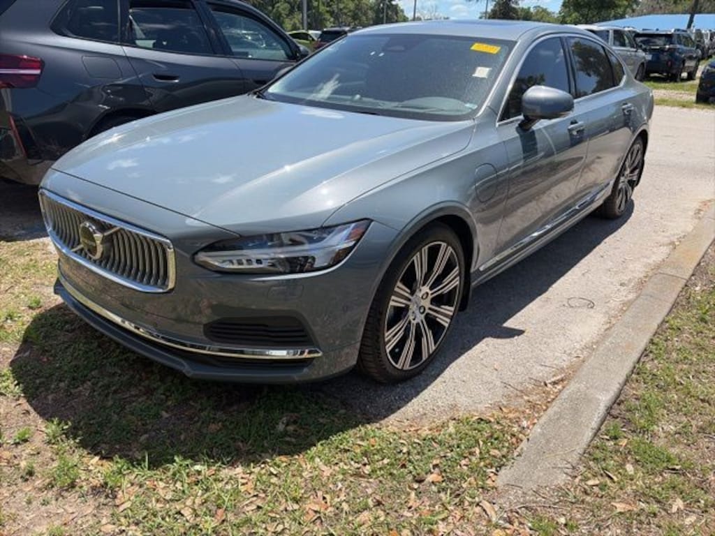 Priced below KBB Fair Purchase Price! Gray Metallic 2023 Volvo S90 Recharge Plug-In Hybrid Ultimate AWD Automatic with Geartronic 2.0L I4 16V Turbocharged